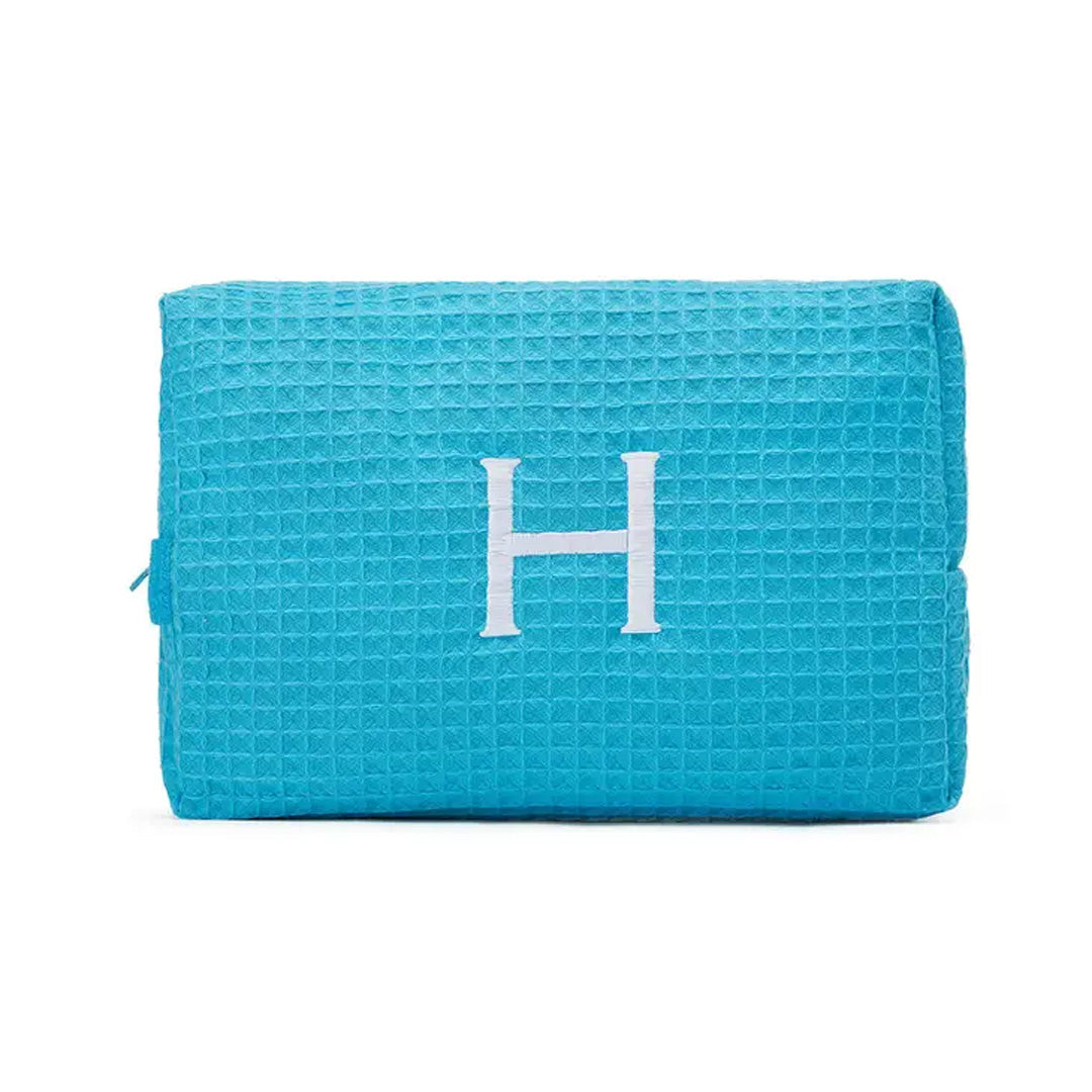 WOMAN'S LARGE PERSONALIZAED COTTON WAFFLE MAKE UP BAG