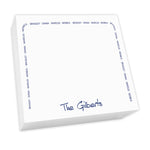 The Anthony Family Arch Desk Slab - White features a bottom line of primary personalization and up to 10 individual names that create a border around the notepad. Printed in your choice of 16 matte ink colors. Produced on our high-quality white paper text sheets.