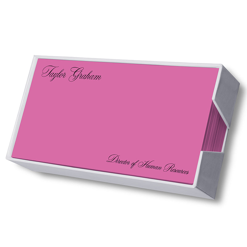 The Aviator List - Carnival with holder is horizontally formatted, offering both top left and/or bottom right lines of text (printed in black, matte ink). Choose from 5 colorful papers and 10 lettering styles to personalize these handy list sheets.
