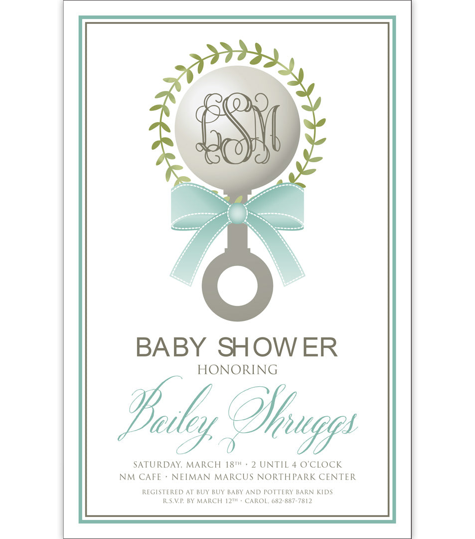 Share your celebration with this artisan Baby Rattle invitation, crafted to add a delicate, handcrafted flair to your special event.