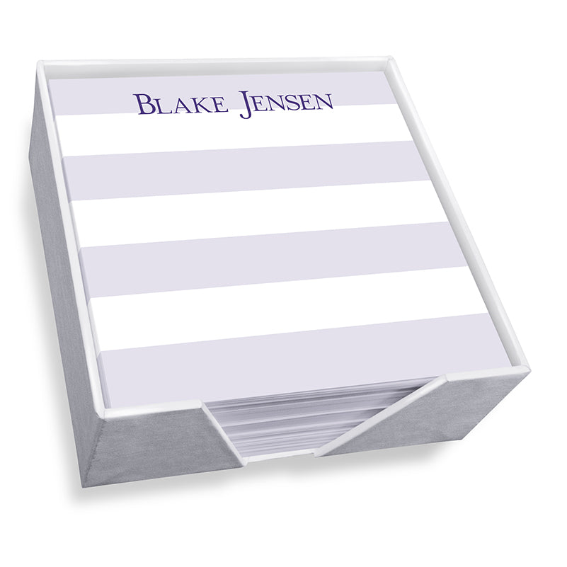 The Banded Memo Square - White with holder makes for a great gift. With a matching banded pattern and a selection of 10 fonts and 8 matte ink colors, your friends will appreciate this low-cost gift. Produced on our high-quality white paper text sheets.
