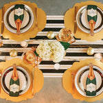 Elevate your dining experience with the Black & Gold Awning Stripe Table Runner. Its sleek black and gold stripes add a refined, contemporary touch to any table setting, making it perfect for both formal occasions and stylish everyday use. Crafted to enhance your décor effortlessly, this table runner brings a sophisticated statement of elegance and charm to your entertaining space.