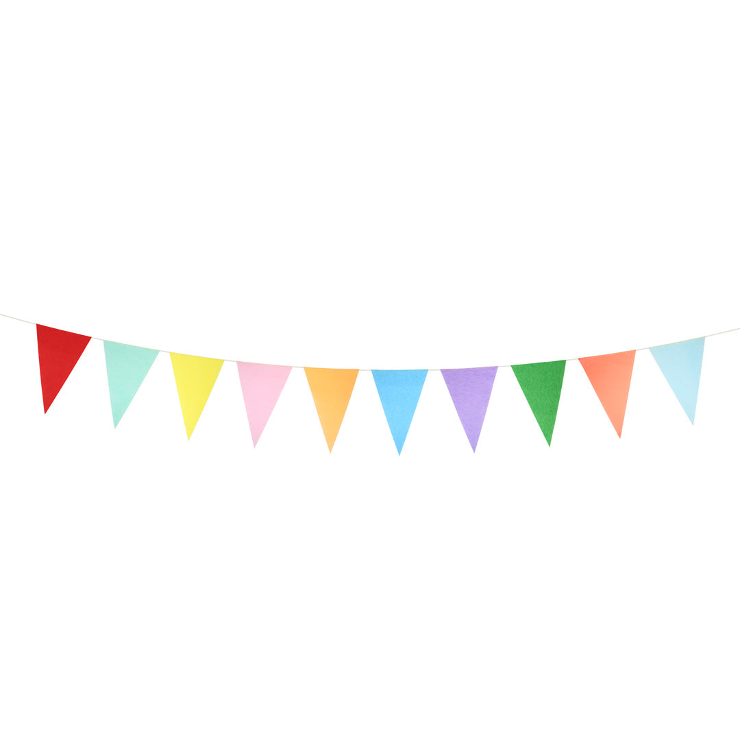 Fly the flags, there's a special event to celebrate! These bright and colorful tissue paper flag garlands are ideal to hang on party tables, mantels or doorways, or in the porch, windows or garden. The mix of colors will beautifully complement any party theme. Reuse time and time again to add instant cheer.