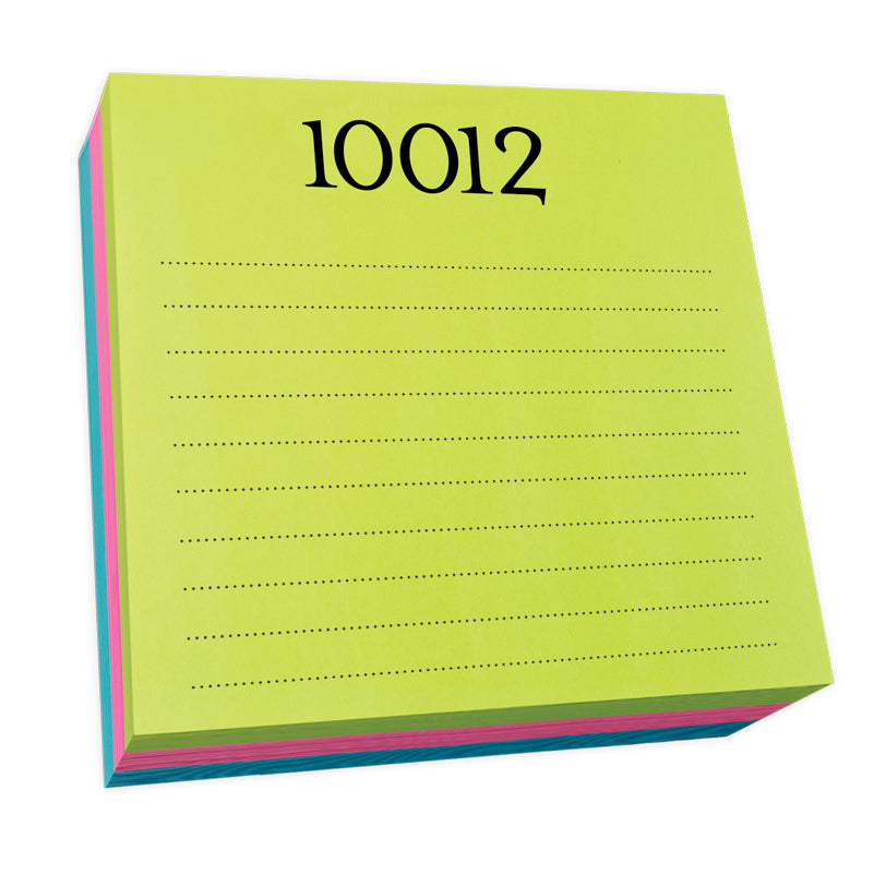 The Brookland Desk Slab - Carnival allows you to select from five colorful paper options. Printed in black ink, this large notepad features a choice between 2 large lettering styles and up to five characters, perfect for a zip code or your initials.