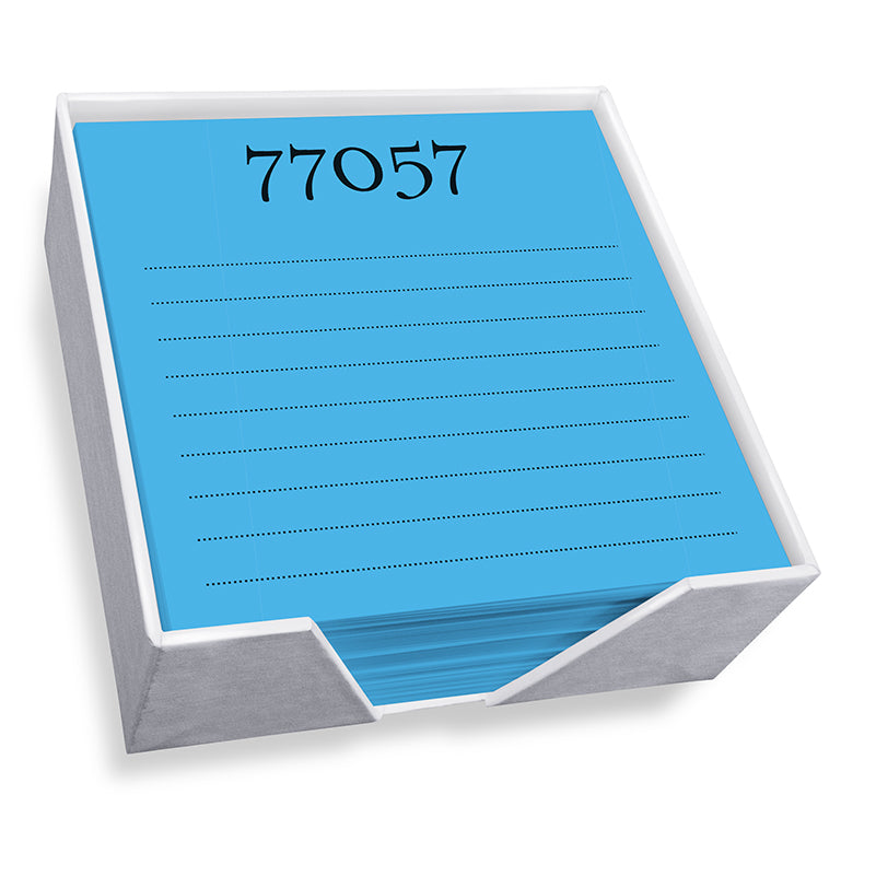 The Brookland Memo Square - Carnival with holder allows a choice between 5 colorful papers and features a large font size with up to five characters, perfect for a zip code or your initials. Choose from 2 popular font styles (printed in black, matte ink) to complete your personalization.