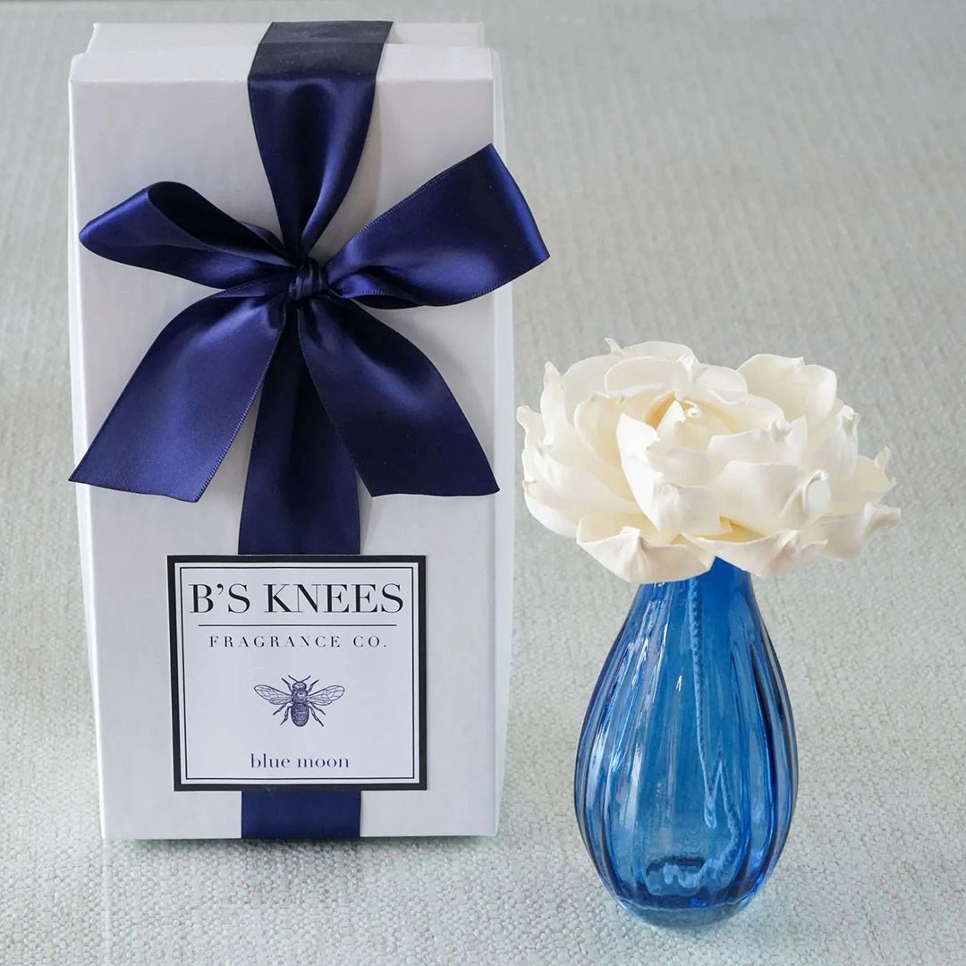 Elevate your space with the B'S KNEES Blue Moon Diffuser in Dark Blue. Its elegant design blends seamlessly with any décor, while delivering a soothing aromatic experience. With Jasmine, white tea, and cyclamen, infused with subtle hints of teakwood, sandalwood and amber! Breath in that fresh night air!
