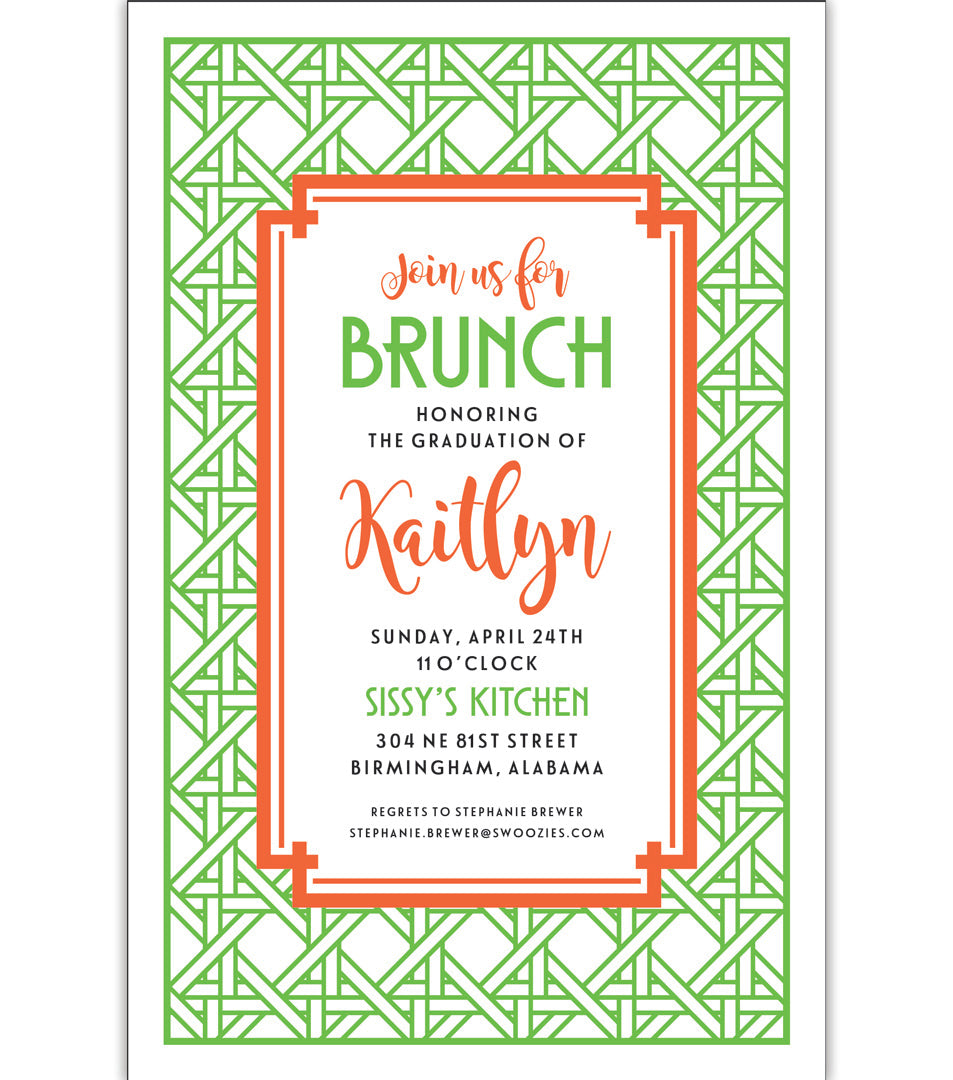 Share your celebration with this artisan Caning invitation, crafted to add a delicate, handcrafted flair to your special event.