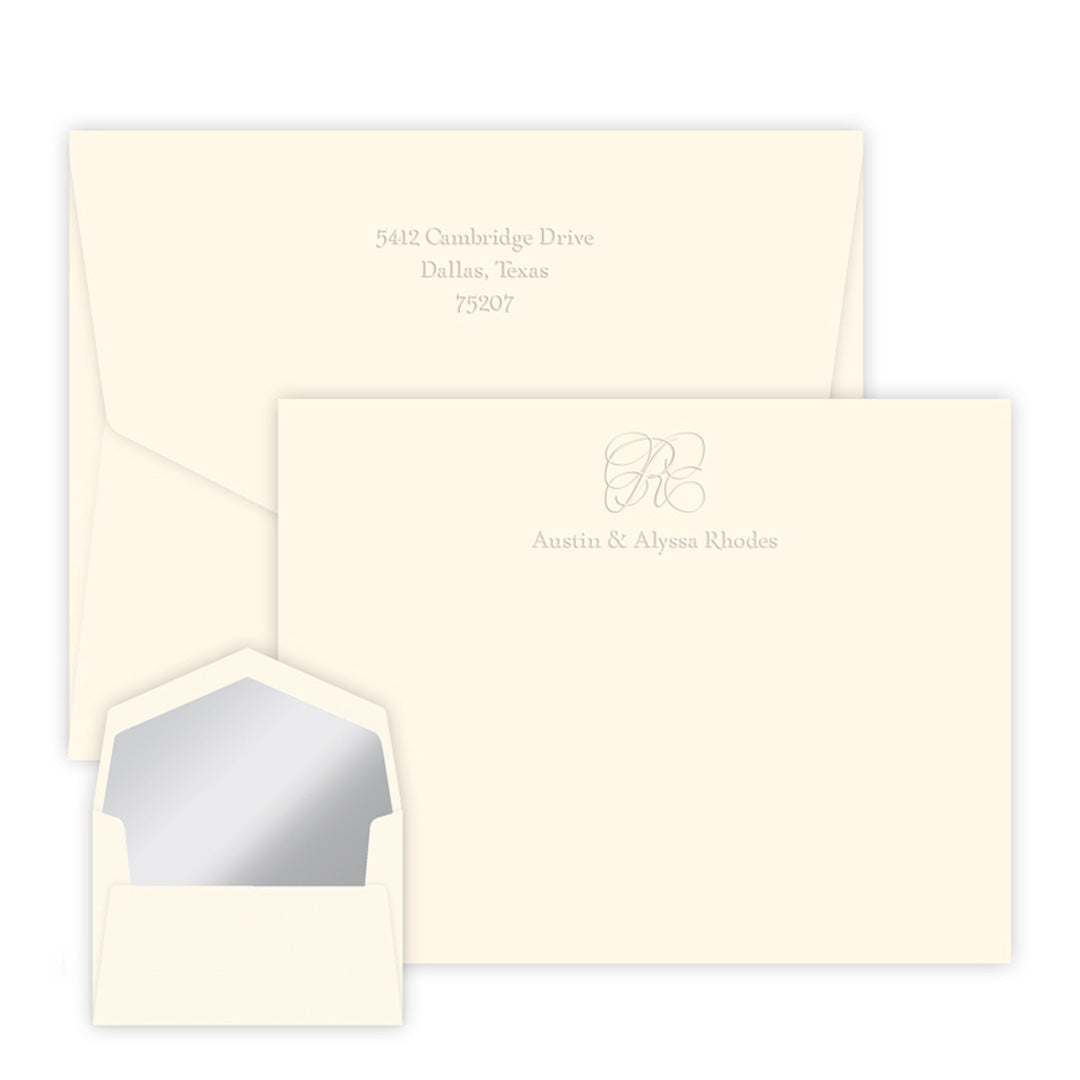 Executive stationery can be both sophisticated and approachable. The Embossed Capital Correspondence Card strikes the perfect balance, offering a distinctive yet effortless style for your handwritten notes. Designed for the modern corporate professional, this card features an exclusive, flourished initial that adds a touch of elegance. Additionally, you can personalize a second line showcasing your name in a classic serif font, enhancing the card’s refined appearance. Crafted with precise embossing on triple-thick cardstock, the Capital Card delivers a sharp, well-defined impression that elevates your correspondence with every use.