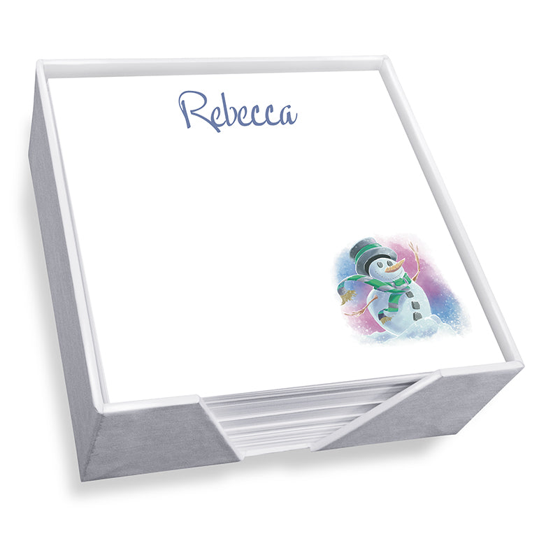 CHEERFUL SNOWMAN MEMO SQUARE - WHITE WITH HOLDER