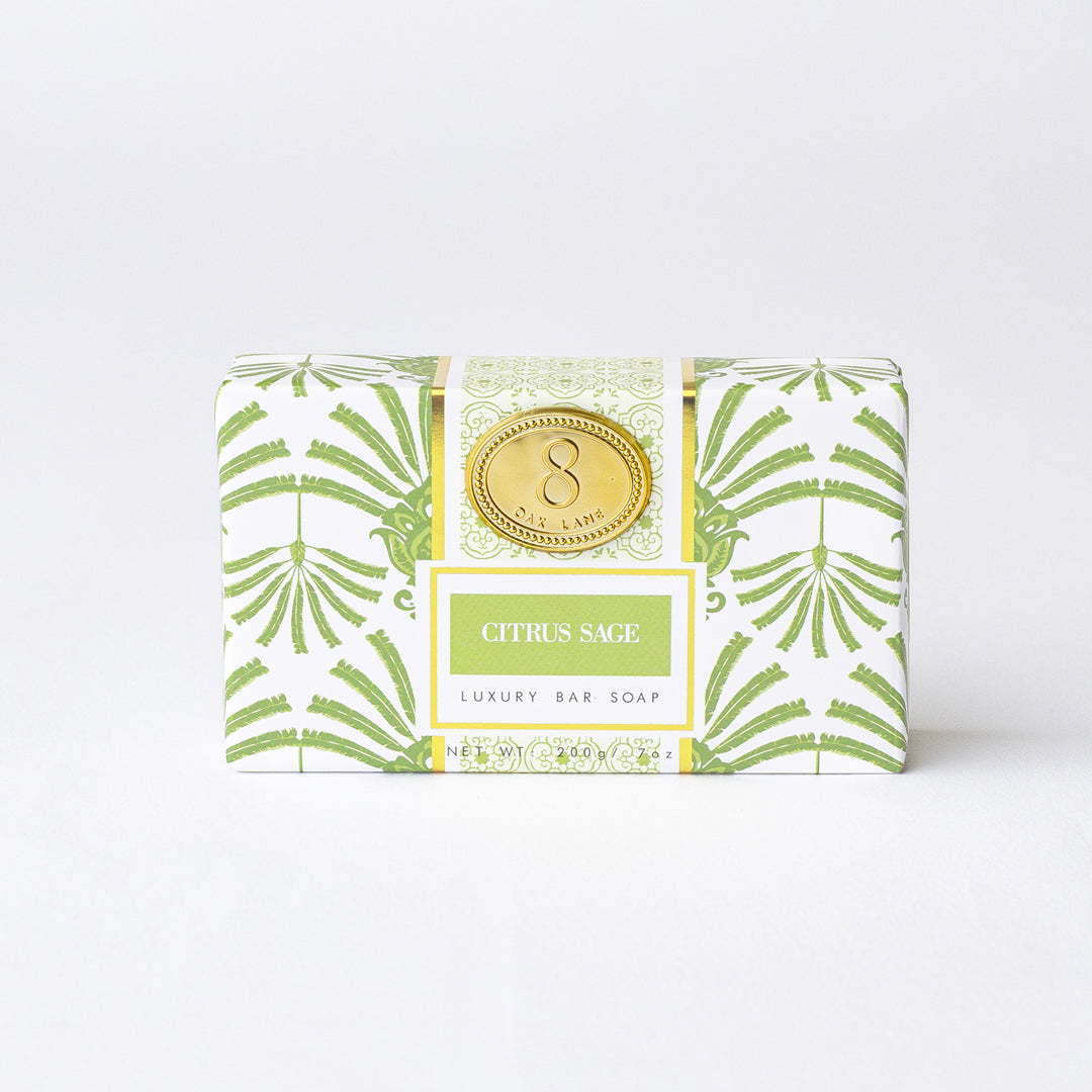 Elevate your daily ritual with the Citrus Sage Wrapped Bar Soap from 8 Oak Lane. This refined soap blends invigorating citrus notes with the calming essence of sage, delivering a fresh and balanced cleanse. Wrapped elegantly, it offers both a luxurious experience and a touch of sophistication to your bathroom. Ideal for those who appreciate subtle yet uplifting scents in their skincare routine.