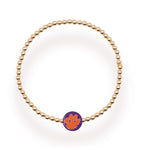 The Beaded Blonde Clemson Tigers Logo Gold Bracelet is a sophisticated 3mm gold beaded stretch bracelet featuring a durable acrylic bead that resists fading. Designed to be waterproof, workout-proof, and tarnish-resistant, this elegant accessory combines style with lasting quality, making it perfect for everyday wear and showing your Tigers pride with grace.
