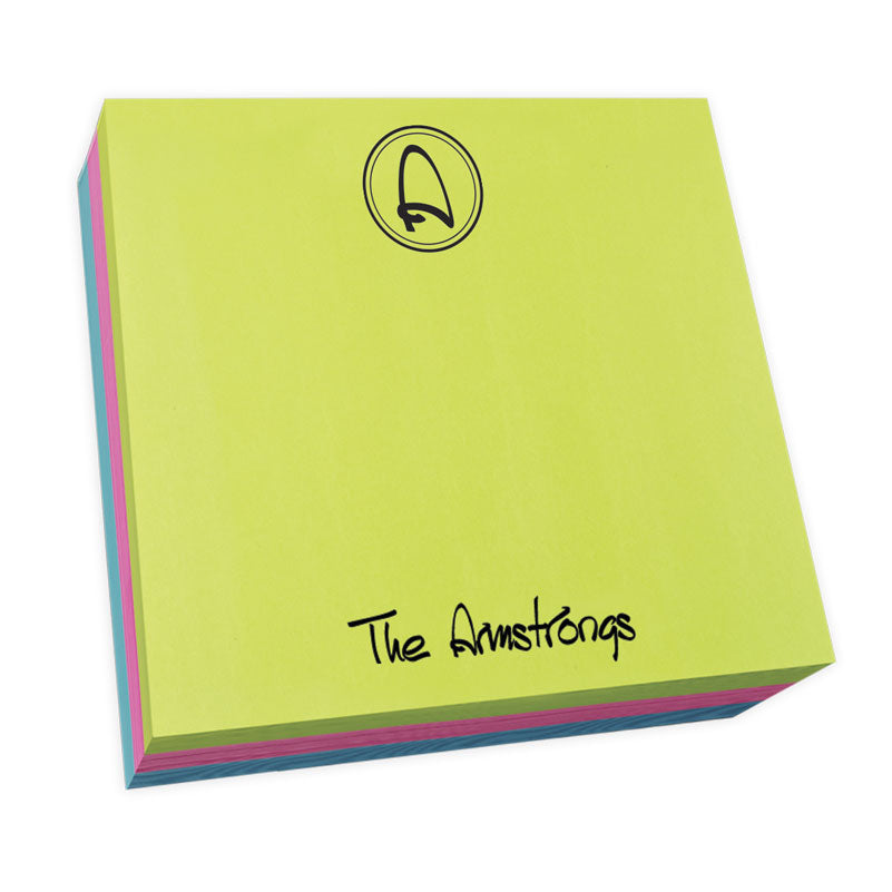 Our Crest Desk Slab - Carnival allows a choice between 5 colorful papers. This item features your encircled initial (top center) and an additional bottom line of text personalization in a choice of 10 lettering styles. Printed in black, matte ink.