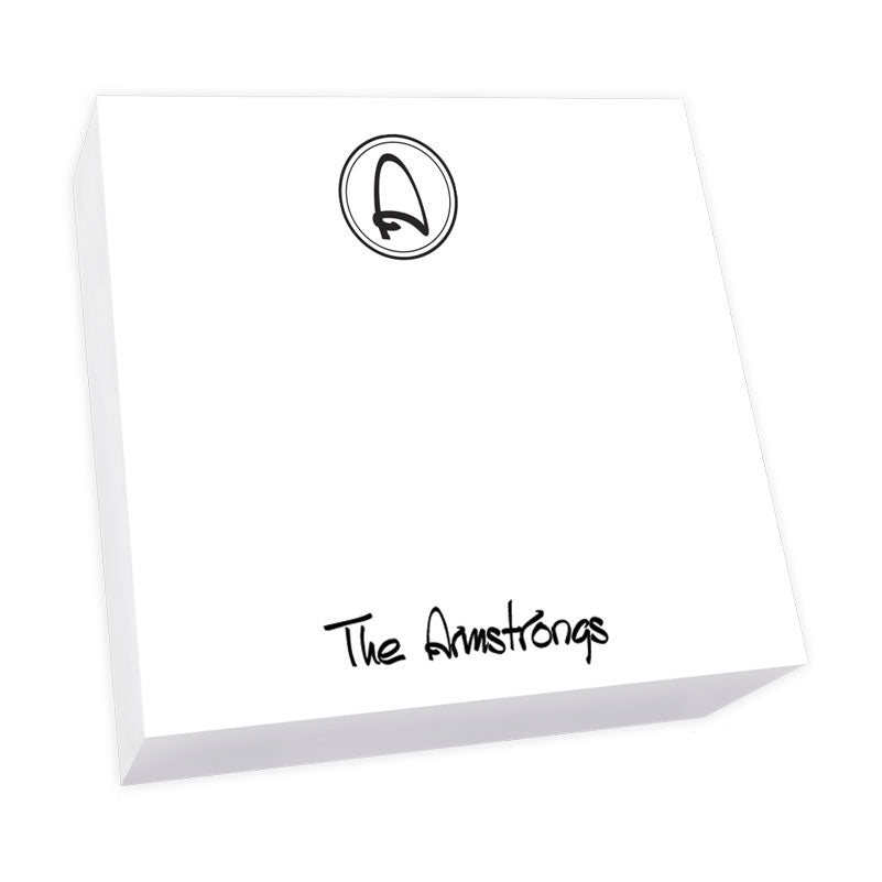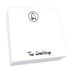 Our Crest Desk Slab - White features your encircled initial (top center) and an additional bottom line of text personalization in a choice of 10 lettering styles. Choose from 8 solid, matte ink colors. Produced on our high-quality white paper text sheets.