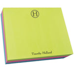 Our Crest Super Slab - Carnival allows a choice between 5 colorful papers. This item features your encircled initial (top center) and an additional bottom line of text personalization in a choice of 10 lettering styles. Printed in black, matte ink.