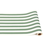Complete your table setting with the Dark Green Classic Stripe Paper Table Runner. Perfect for entertaining, it can be rolled out along the entire length of your table or arranged in shorter sections between place settings for a stylish touch. This versatile runner also works beautifully as gift wrap. Designed and printed in the USA. Dimensions: 20" W x 25' L.
