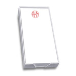 Our Delavan Monogram Mini List - White with holder features your choice of 10 monograms, printed top center in one of 16 matte ink color selections. Produced on our high-quality white paper text sheets.