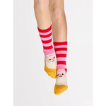 Get into the holiday spirit from the toes up with these cheerful Santa Socks. Featuring jolly Santa faces at the toes and bold red-and-pink stripes up the calf, these socks are pure festive fun. A cozy yellow heel and toe add a warm pop of contrast, making these socks as bright as the season. Whether you’re wrapping gifts or sipping cocoa, these fuzzy socks will keep you comfy and smiling