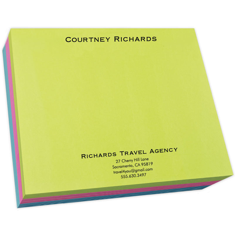 Our Skyline Super Slab - Carnival allows a choice between 5 colorful papers and 10 popular fonts printed in black, matte ink. This popular large tablet offers 1 top line and up to 5 bottom lines of text, perfect for use in the office.