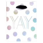 Add a sparkling touch to your gift with the Spectrum Mini Tote Bag! This charming mini bag showcases a pattern of iridescent circles enhanced by holographic foil and embossed details. Black satin handles combine style and practicality. Perfect for birthdays, anniversaries, or holidays, this gift bag brings a playful and elegant flair to any celebration.