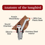 Add whimsical delight to every pour with the Songbird Specialties Wine Bottle Pourer. The Songbird will "sing" as you pour wine for yourself and guests to make your gathering just a little more magical. It will provide a smooth, perfect pour each time. In addition to wine, the Songbird also works wonderfully for pouring vinegar, liquor, soy sauce, juice, water and more! The wine bottle pourer features a silicone ring at the base to form an airtight seal with the bottle. The interior of the bottle pourer is high-quality stainless steel and the Songbird's "beak" is made from BPA-free plastic. The silicone wings of the bird are a radiant red color. It's a wonderful gift for anyone that loves wine!
