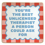 Keep your little treasures in check with the Unlicensed Therapist Trinket Tray! Perfect for jewelry, keys, or tiny keepsakes, this playful tray adds a touch of humor and charm to any space. Compact and fun, it’s a witty way to organize your daily essentials while bringing a smile to your day.