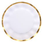 These white wavy dinner paper plates bring a touch of elegance to your table with their subtle, flowing edges. Designed for sophisticated occasions, they offer a stylish yet practical solution for serving meals, combining refined aesthetics with easy cleanup. Perfect for enhancing any event with understated charm.