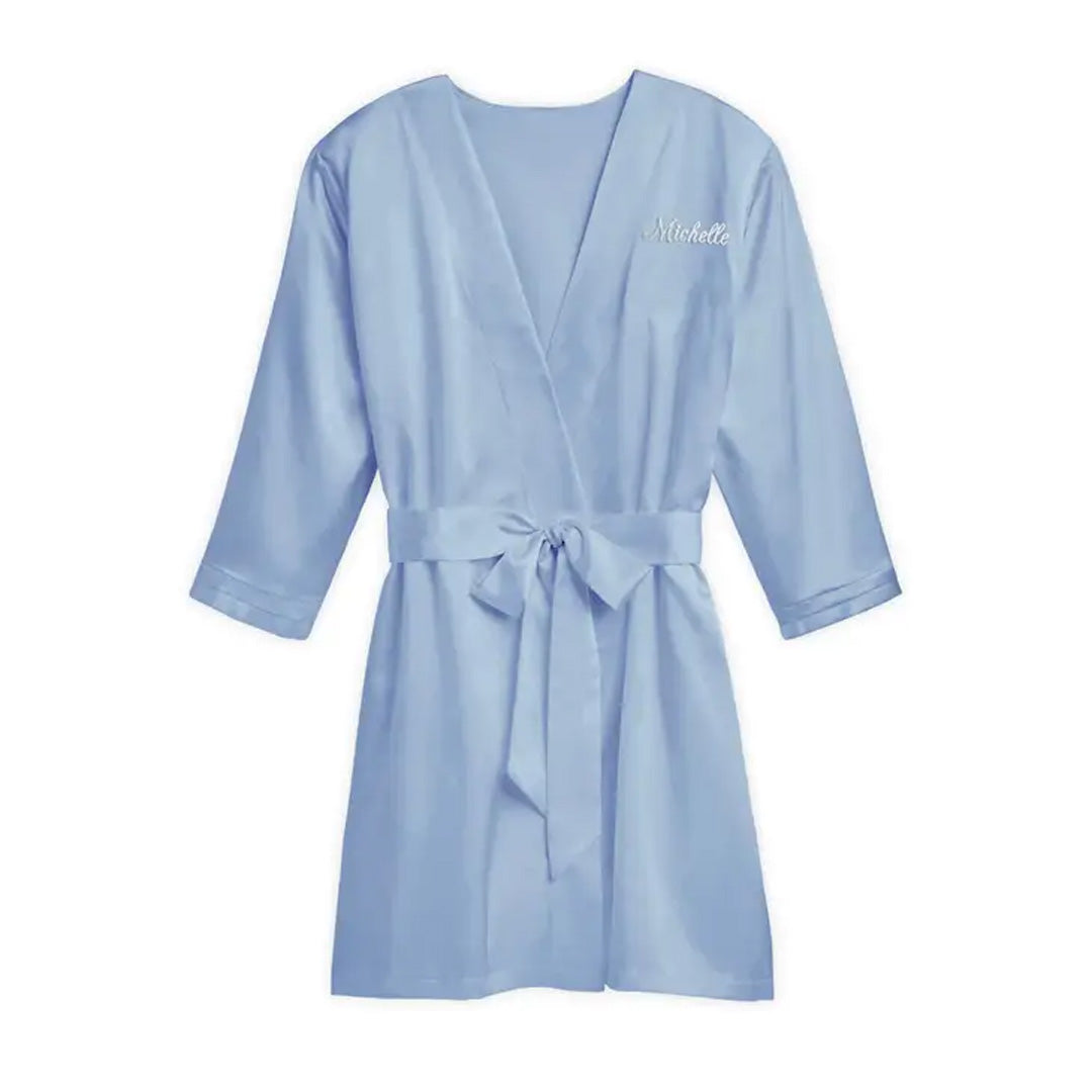 WOMEN'S PERSONALIZED EMBROIDERED SATIN ROBE WITH POCKETS