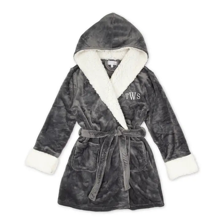 WOMEN'S PERSONALIZED EMBROIDERED FLUFFY PLUSH ROBE WITH HOOD - GRAY