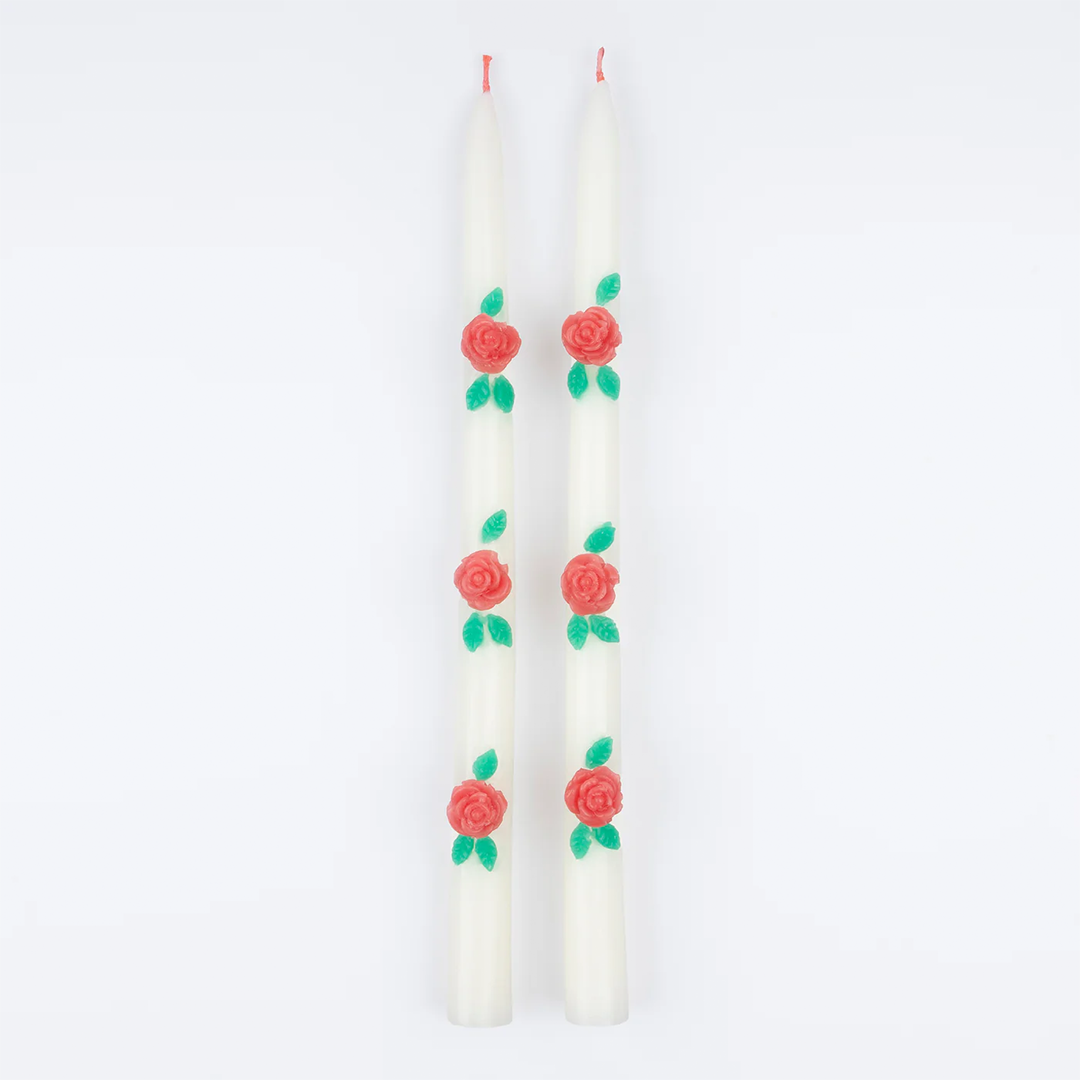 ROSE TAPER CANDLES SET OF TWO