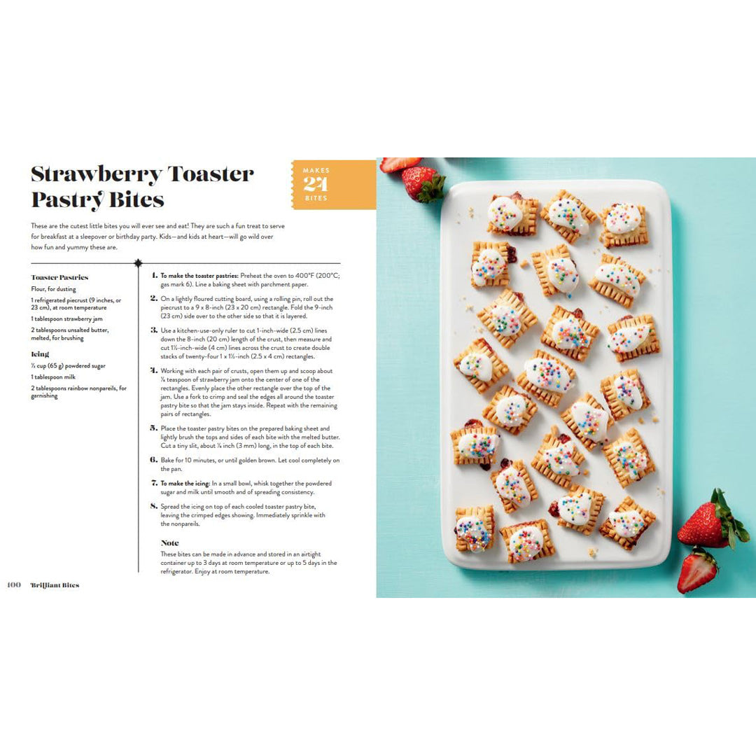 Impress your family and guests with elegant miniature versions of their favorite dishes. Featuring 75 thoughtfully crafted appetizers, Brilliant Bites offers effortless, kid-friendly entertaining that’s simple to shop for and prepare. Created by Maegan Brown—The BakerMama and best-selling author of Beautiful Boards—this collection presents visually stunning and irresistibly delicious finger foods ideal for parties, special occasions, breakfast and brunch, everyday snacks, desserts, and festive holiday-themed bites. Each meticulously portioned recipe requires minimal, easy-to-find ingredients, and is designed to be enjoyed in one or two bites without the need for plates or utensils, making preparation and cleanup seamless. This refined assortment balances classic comfort foods with inventive creations, complete with beautiful photography for every dish. Highlights include Charcuterie Board Cracker Bites, Wedge Salad Bites, Buffalo Chicken Celery Bites, Steak Frites Bites, Loaded Baked Potato Chips, Strawberry Shortcake Bites, Patriotic Pie Bites, Banana Split Bites, Fro-Yo Bites, and more. Complementing these are 11 sophisticated Savvy Sips—creative cocktails and mocktails perfectly paired to elevate your entertaining experience. Whether enjoyed individually or combined, these thoughtfully designed bites promise to leave a lasting impression on all your guests.