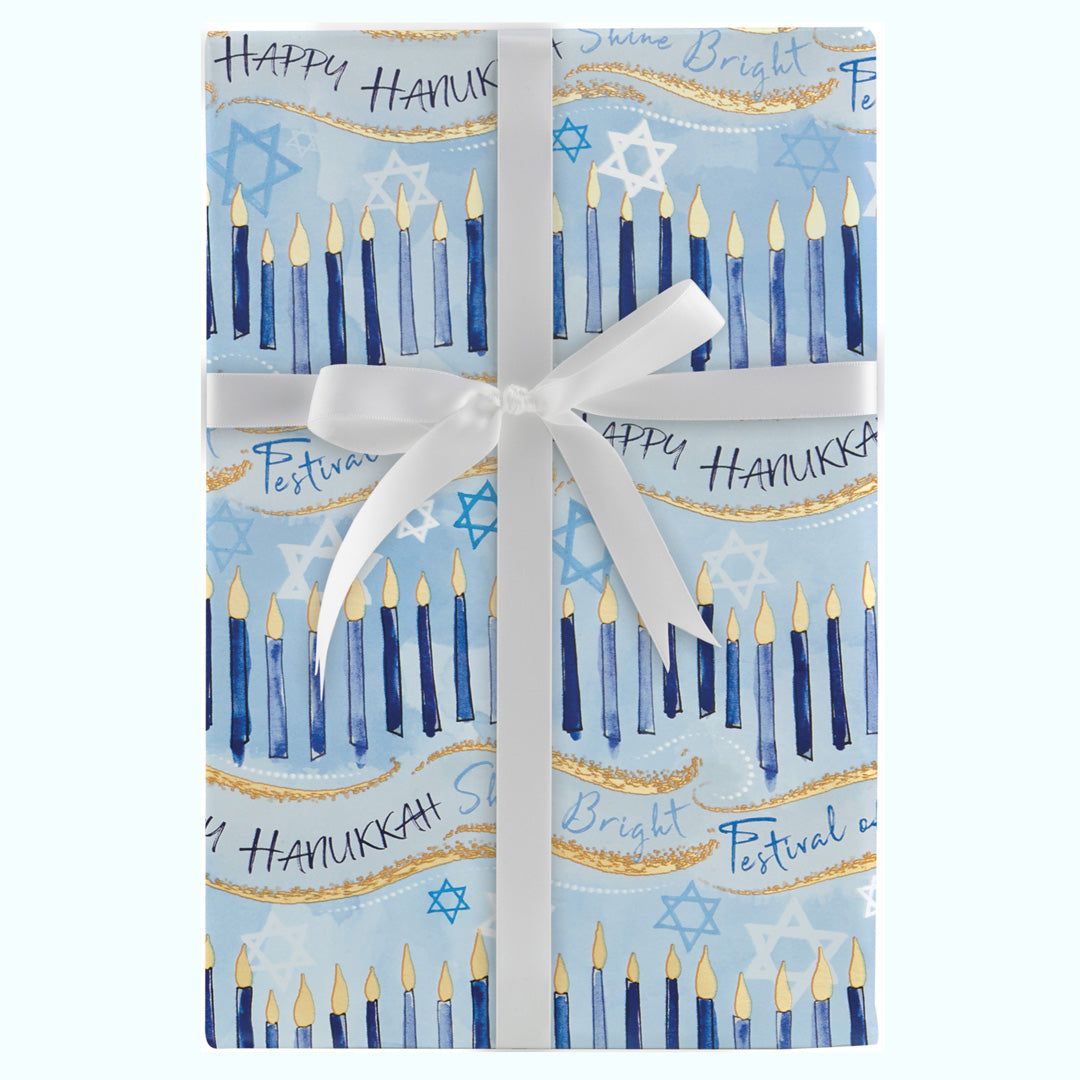 Brighten your Hanukkah gifts with the Festival of Lights Roll Wrap! This playful wrapping paper features a glowing design that adds festive cheer to every present. Perfect for making your holiday surprises shine and spreading joyful vibes throughout the celebration.
