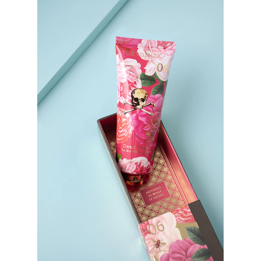 Rich hydration. Savor the decadence of fan-favorite Dead Sexy Handcreme in a more sumptuous size, so luxurious moisture is always at hand. Unexpected essences are crushed & distilled then blended with extracts of Japanese Green Tea and enveloped in moisture-rich Shea Butter to create this coveted treasure.