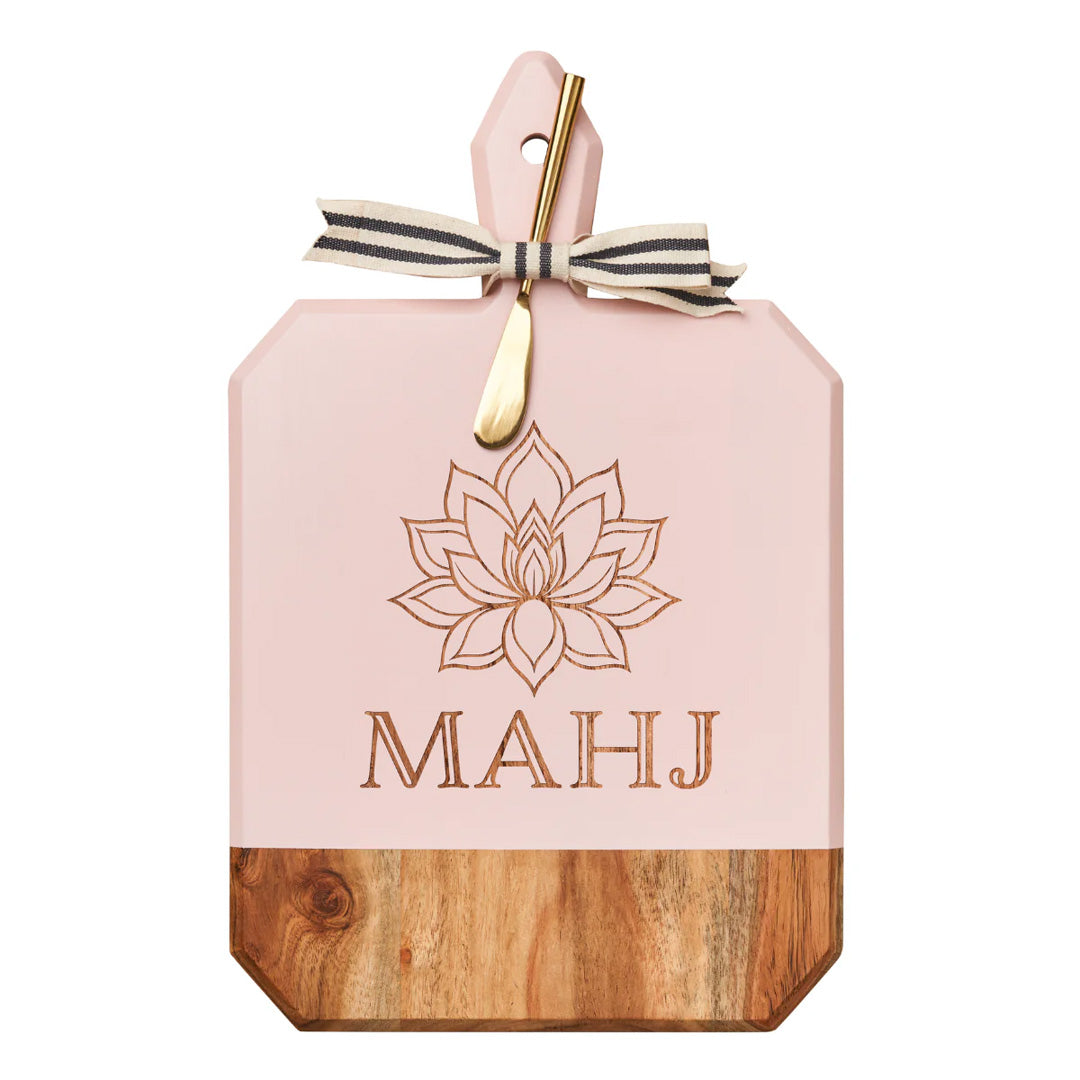 ACACIA HEIRLOOM BOARD IN BLUSH WITH HANDLE ROUND & GOLD SPREADER | LOTUS MAHJ