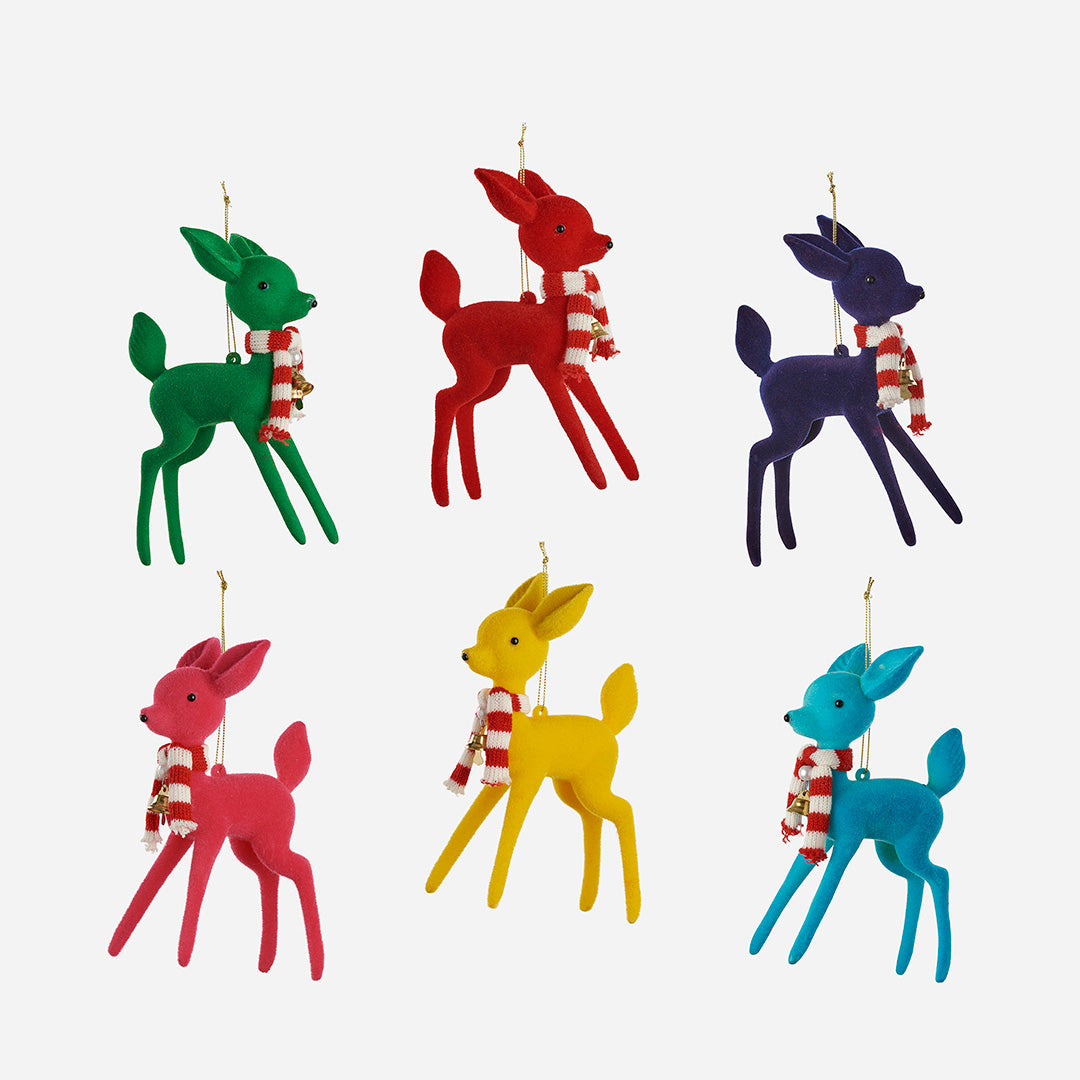 FLOCKED 50'S DEER ORNAMENT