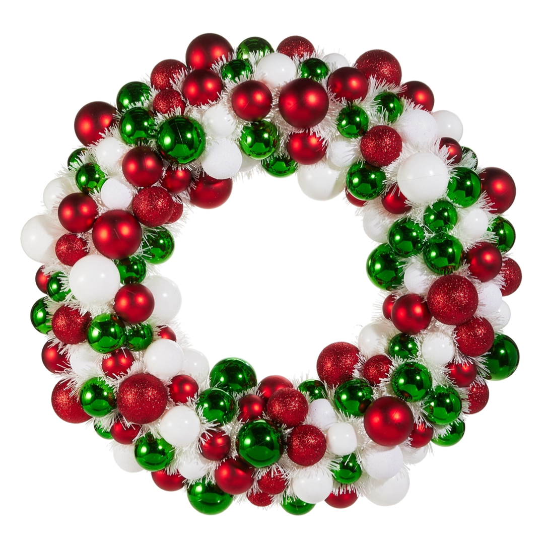 RED GREEN WHITE BALL ORNAMENT WREATH