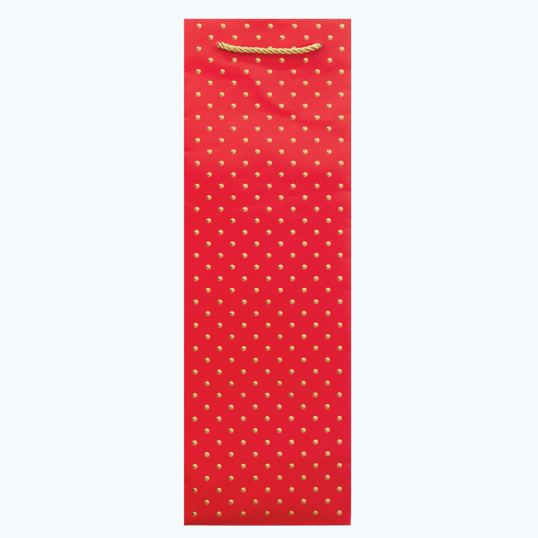 Make every bottle gift extra festive with the Red Gold Swiss Dots Bottle Bag! Featuring a vibrant red hue dotted with cheerful gold Swiss dots, this bag brings a playful sparkle to any celebration. It’s the perfect way to add color, charm, and a touch of sparkle while keeping your gift stylish and secure. Unwrap happiness, one bottle at a time!