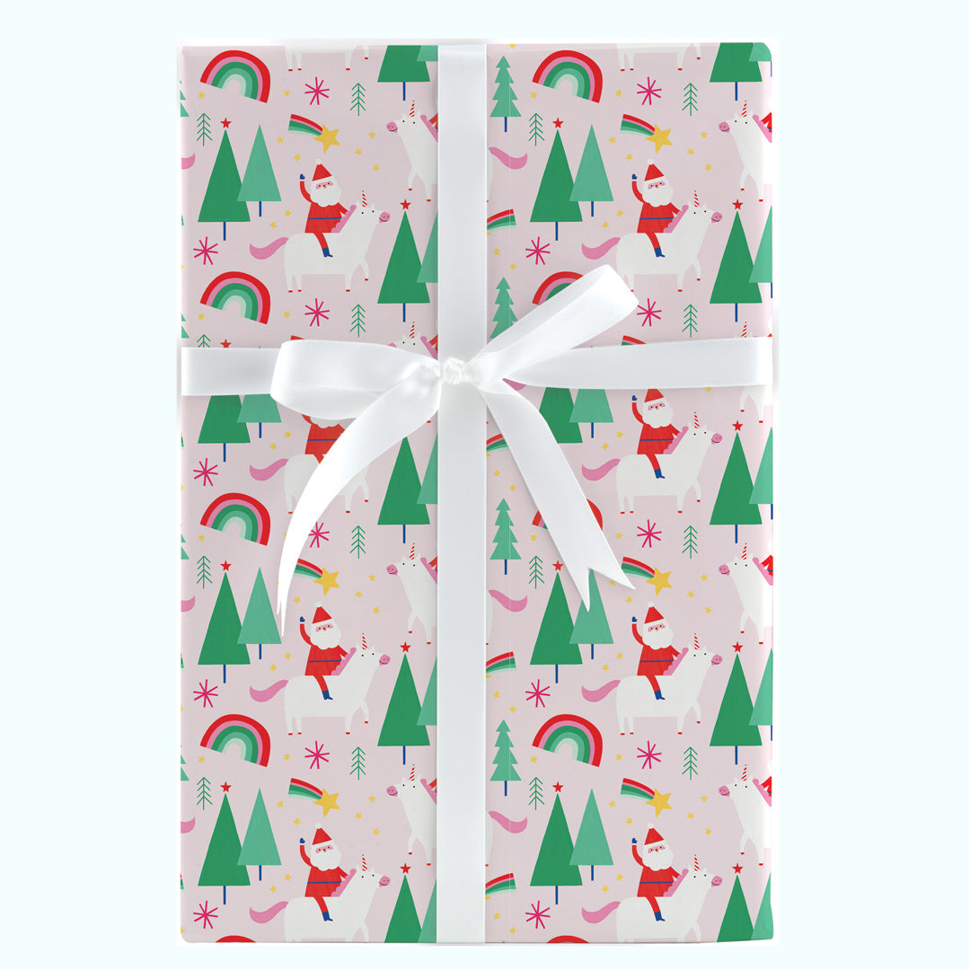 RAINBOW UNICORN SANTA JUMBO ROLL WRAP