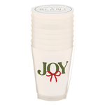 Spread holiday cheer with our frosted plastic cups printed with a bold "JOY" and a festive red bow. These cups make the perfect choice for cocktails, mocktails, and more at your seasonal celebrations. Designed for effortless entertaining, these cups bring a joyful vibe to any holiday occasion.