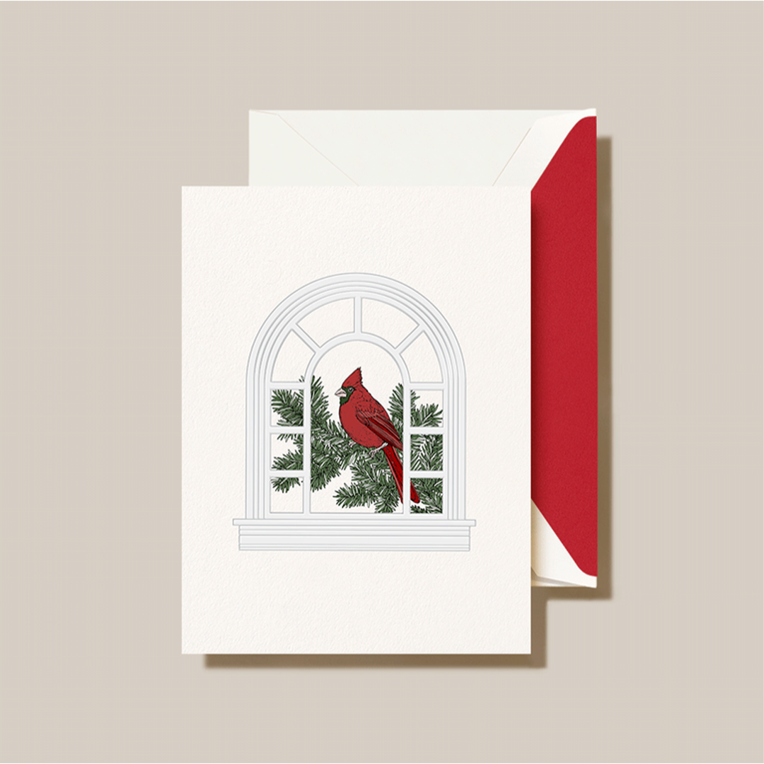 ENGRAVED CARDINAL IN WINDOW GREETING CARD