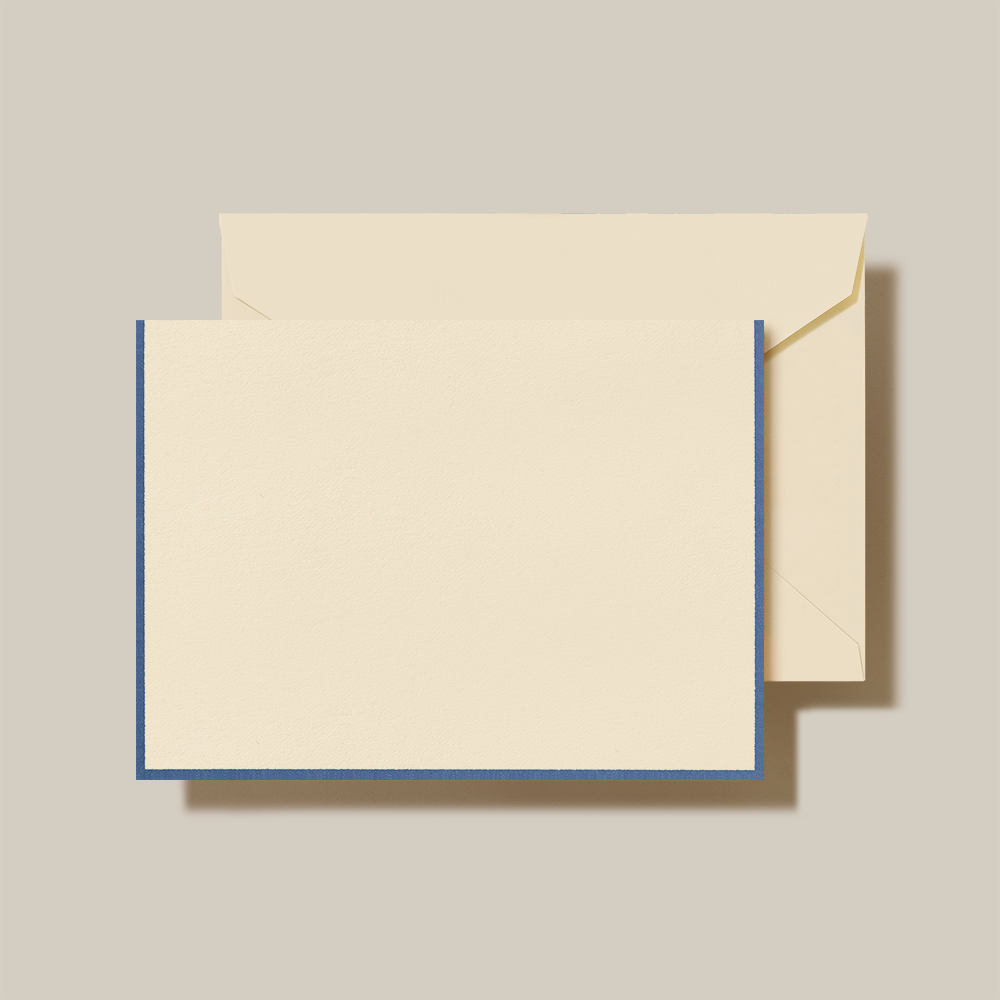 Keep a box of all-cotton, warm white note cards on hand so you can rise to any occasion. Bordered in regent blue, these folded notes are appropriate for personal and professional communications, whether you're sending congratulations, birthday wishes, or support.