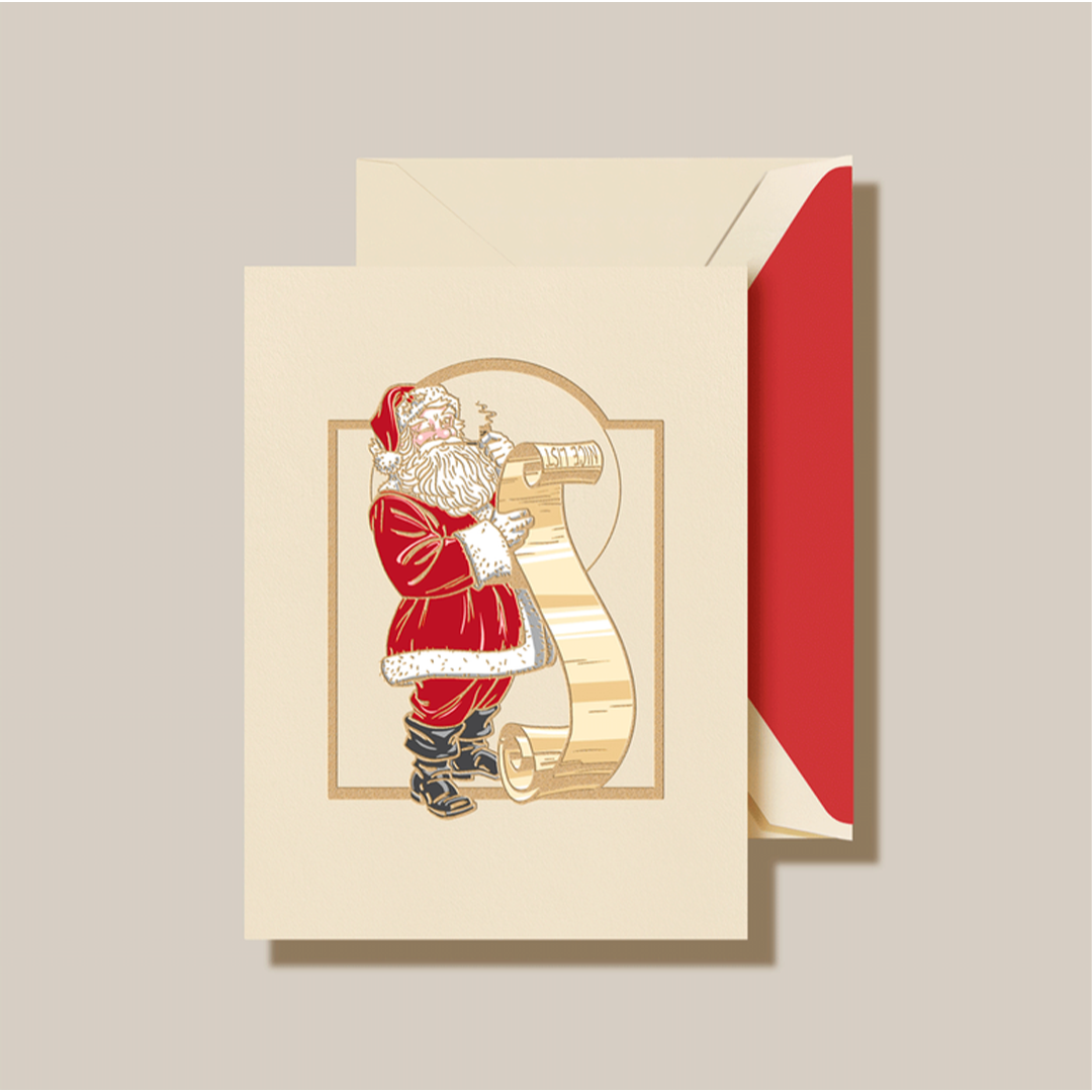 ENGRAVED VINTAGE SANTA WITH LIST GREETING CARD