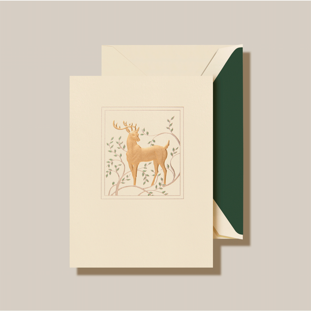 ENGRAVED WOODLAND REINDEER HOLIDAY GREETING CARD