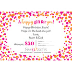 Send a Personalized Digital Gift Card. Surprise someone special with a customizable digital gift card! Choose the amount, add a heartfelt message, and we’ll send it straight to their inbox. Just provide the recipient's email address and share the love in seconds—perfect for any occasion!