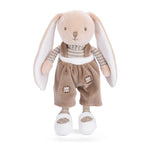 Meet one of the Little Bunny Brothers - an adorable plush bunny that loves to stick close to your little one wherever they go. This friendly bunny is adorned in a tan and white striped turtleneck, paired with tan patchwork overalls and adorable white flats sure to capture your child’s affection. With his long, floppy ears, and soothing, soft appearance, he’s sure to win over your child's heart, providing comfort and companionship wherever they go.
