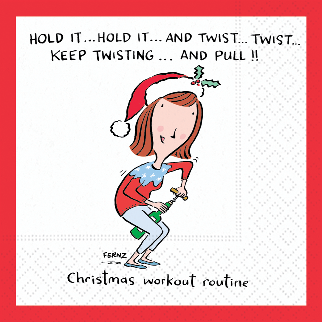 Bring the laughs to your holiday celebrations with TWISTED CHRISTMAS WORKOUT beverage napkins! These cheeky paper napkins are made for anyone balancing festive feasts with fitness goals. Perfect for holiday parties, gym gatherings, or New Year's events, they spark conversation and add a dose of humor to your drink station. The witty design appeals to fitness enthusiasts, holiday lovers, and anyone who appreciates a good-natured joke about seasonal indulgence. Use them at themed parties, office celebrations, or casual get-togethers where your guests love a little playful sass. These napkins prove you can celebrate the season while keeping your sense of humor—and your gains—intact. Stock up and let your guests know you're all about balance, laughter, and holiday fun!