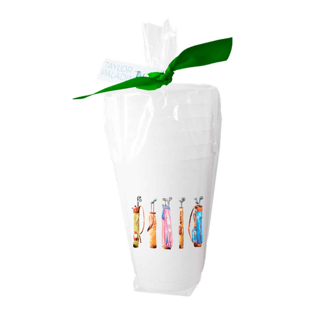 Make your party un-FORE-gettable with our plastic golf cups designed to look like a classic golf bag. These vibrant, fun cups add a playful touch to any golf-themed celebration, making them the perfect accessory for birthdays, golf tournaments, or family gatherings with golf lovers. Crafted from durable plastic, they’re spill-resistant and easy to handle, so guests can enjoy their drinks without a mulligan. Whether you’re sipping lemonade or a favorite party punch, these cups help you drive the fun home while celebrating the golfer in your family with style and charm.