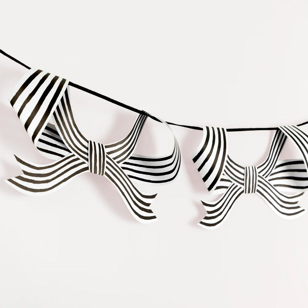 Bows are still having a moment, so this paper garland is a must-have for a chic Halloween celebration. The bold black and white stripes, and soft black velvet ribbon, will give a striking touch indoors or out. Perfect for draping on the party table or mantel, hanging in the porch or windows, or swaying from trees. Plus, it's reusable to bring effortless elegance, and a hint of eerie charm, year after year.