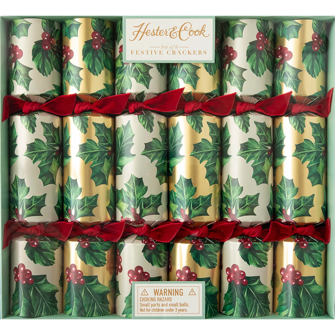 Discover the magic of a cherished English holiday tradition with Holly Crackers! These whimsical festive crackers are designed to be the star of your seasonal table, combining stunning visual appeal with interactive entertainment that delights guests of all ages. Display them proudly as part of your holiday décor, then invite everyone to participate in the excitement. When guests grasp each end and pull, the crackers burst open with a delightful pop, revealing a collection of surprises tucked inside. Every cracker delivers a festive honeycomb ball, a shower of colorful confetti, a regal gold crown, and an inspirational conversation card packed with fun prompts to spark joy and connection around your holiday table. Whether you're planning an intimate dinner party, a bustling family gathering, or a festive celebration with friends, Holly Crackers instantly transform the mood and create those special moments everyone treasures. They work beautifully as both eye-catching table decorations and memorable party favors your guests will adore. Skip the ordinary and embrace the extraordinary—these crackers promise laughter, surprise, and genuine holiday spirit. Make your celebration unforgettable with the timeless charm and playful excitement of Holly Crackers.