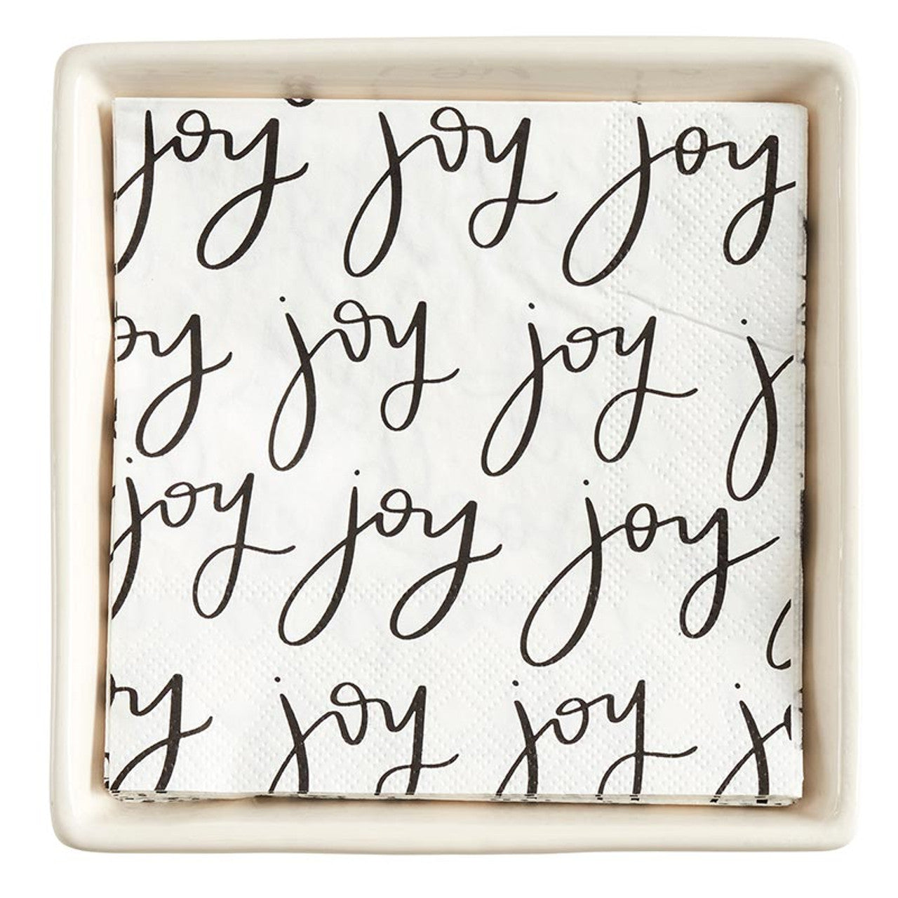CERAMIC NAPKIN TRAY + NAPKINS - JOY PATTERN