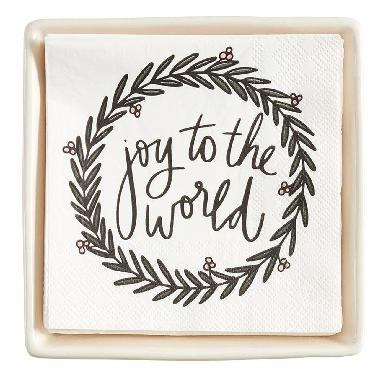 CERAMIC NAPKIN TRAY + NAPKINS - JOY TO THE WORLD
